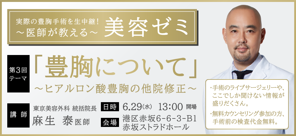 豊胸手術をライブで見て、学んで!東京美容外科 麻生泰院長主催「第3回医師が教える美容ゼミ」が開催決定!観覧募集も開始。
