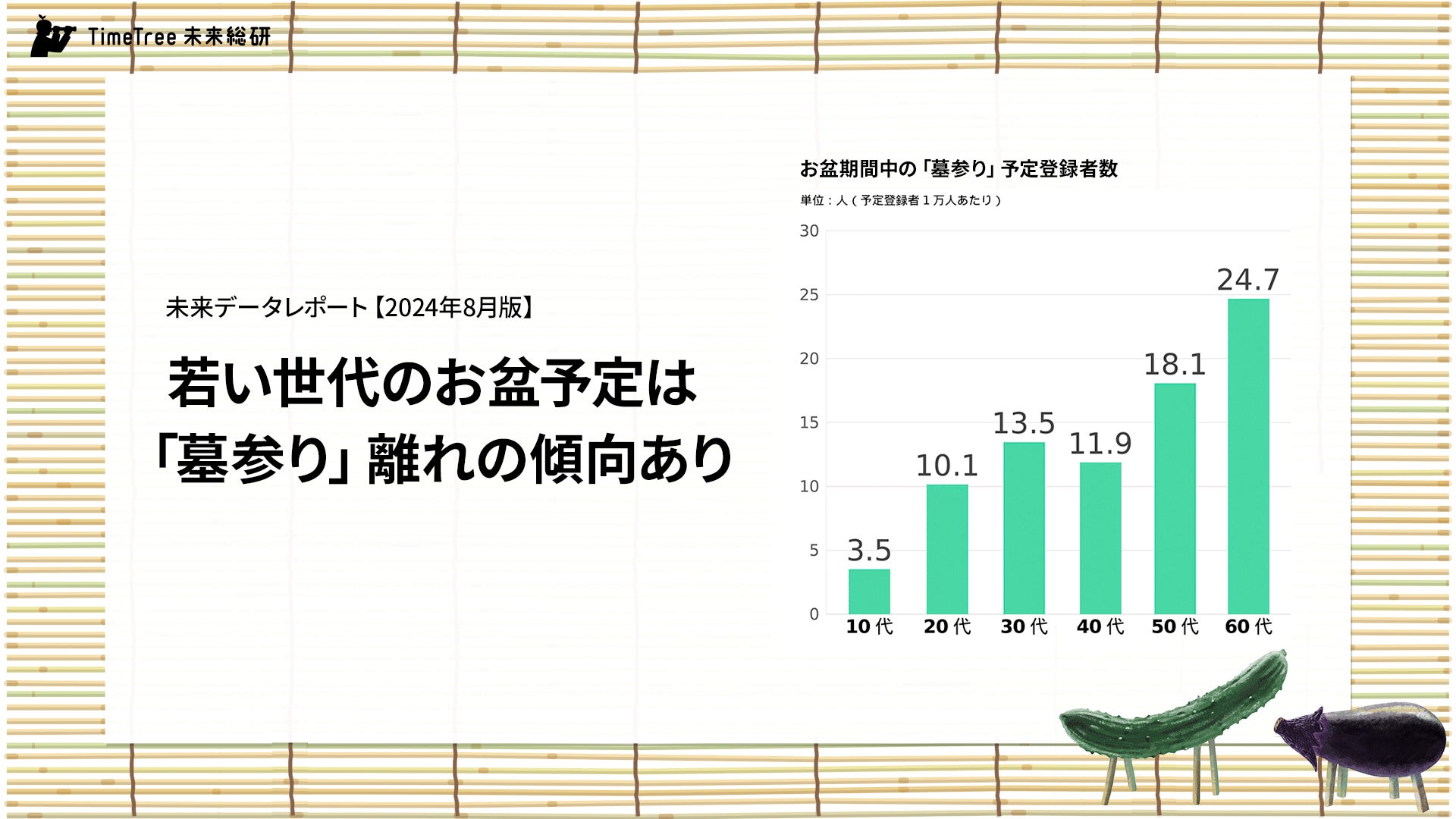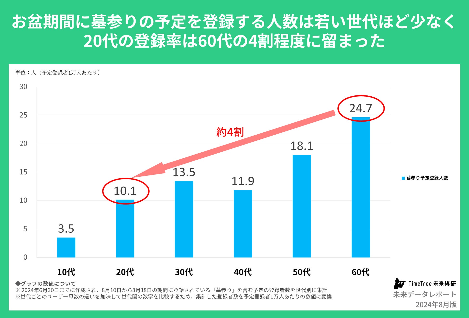 【未来データレポート 2024年8月版】若い世代のお盆予定は「墓参り」離れの傾向あり。20代の「墓参り」予定登録率は60代の4割程度に留まる