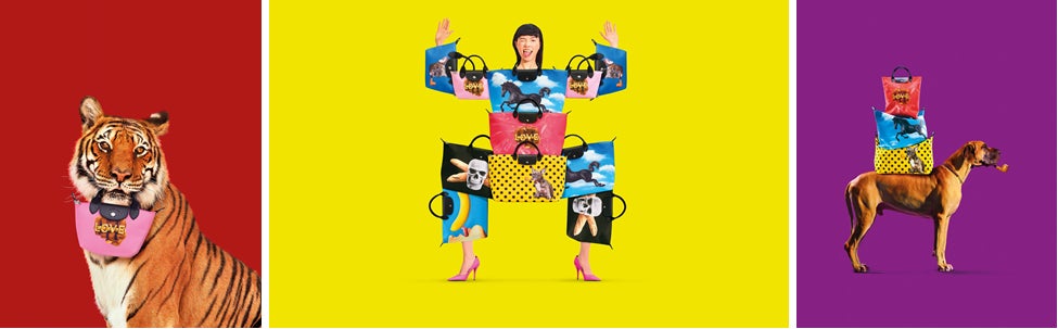 日本の折り紙がもつ“折り畳める”美しさに着想を得て1993年に誕生し、異業界とのコラボを毎シーズン発表してきた「ル プリアージュ®」は、今季ユーモラスな『トイレットペーパー』とタッグを組みます。メゾンが誕生したフランスを彷彿とさせる“フレンチブルドッグ”と“バゲット”、ブランドロゴに描かれている“馬”、マウリツィオとピエルパオロが好むメッセージ“LOVE”、そしてマウリツィオの代表作品“バナナ”※に着想を得て、思わず何度も見返してしまうようなオリジナルビジュアルをアイコニックなバッグのボディにあしらいました。本コラボではバッグ4モデル(トラベルバッグS、トップハンドルバッグXS、トップハンドルバッグM、ポーチ)とキーリング2種、シルクリボン1種を展開し、『トイレットペーパー』限定特別号も刊行いたします。 ※「アート・バーゼル・マイアミ・ビーチ」発表の<<Comedian>>(2019)