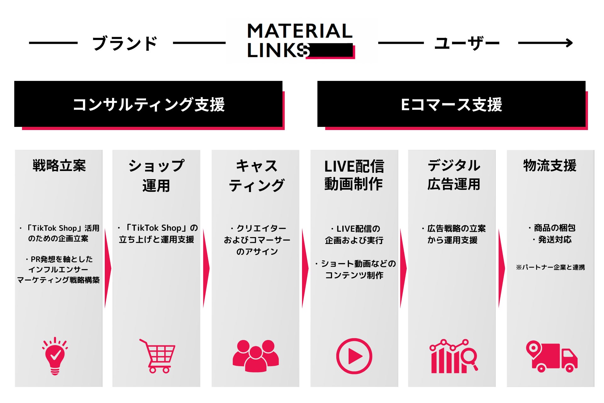 マテリアルリンクスでは、グループ各社の専門性と知見を活かし、PR 発想を通じて、ソーシャルコマースおよび E コマースのマーケティング支援事業を加速させてまいります。