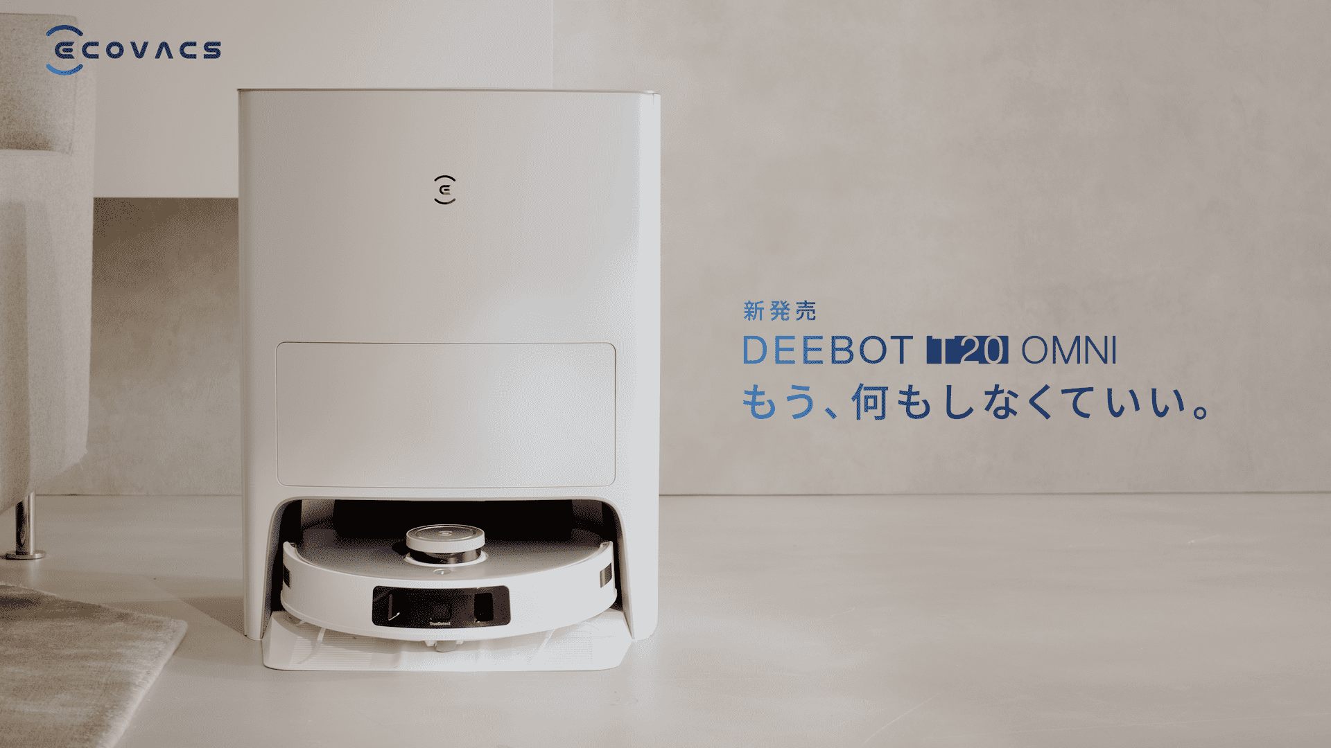 「DEEBOT T20 OMNI(ディーボット・ティトゥエンティ・オムニ)」は、「もう、何もしなくていい。」のコンセプトのもと、ゆとりある毎日を過ごしていただきたいという想いで誕生したTシリーズの最新モデルです。