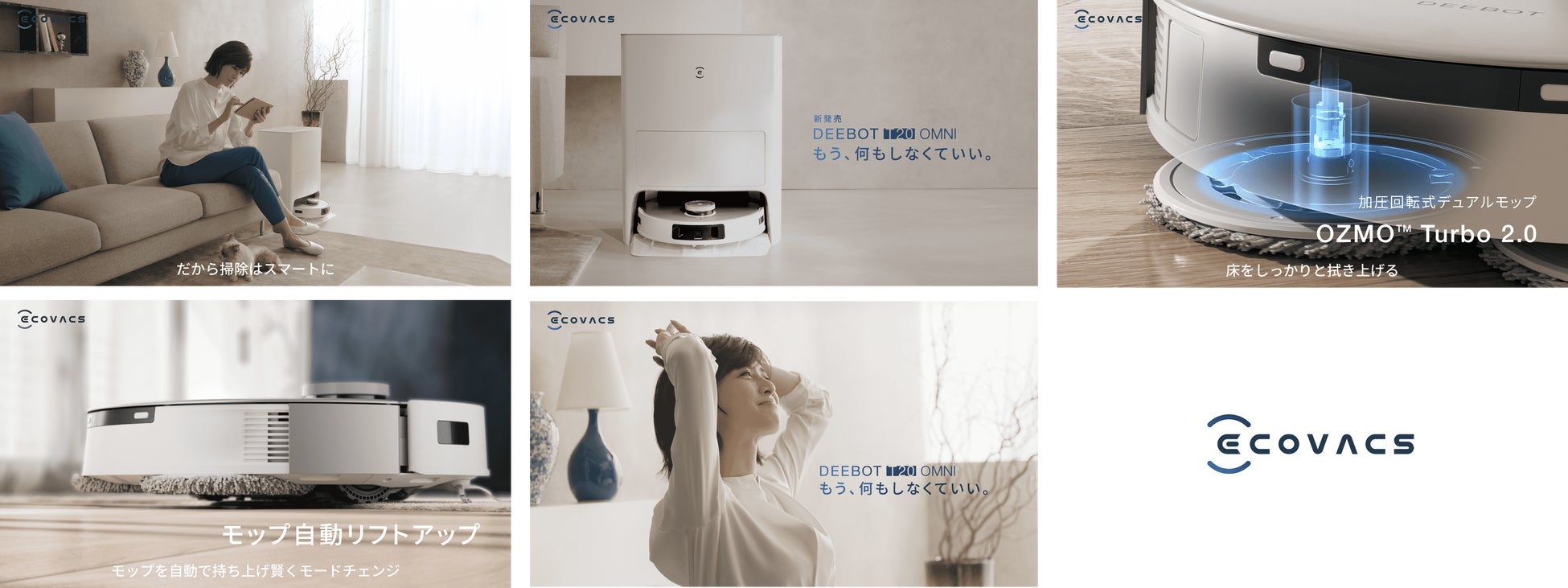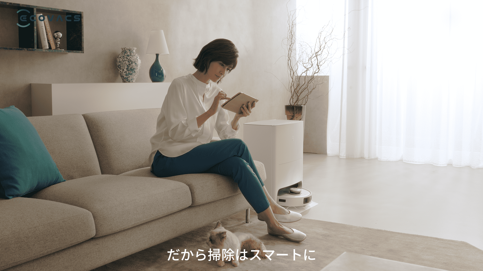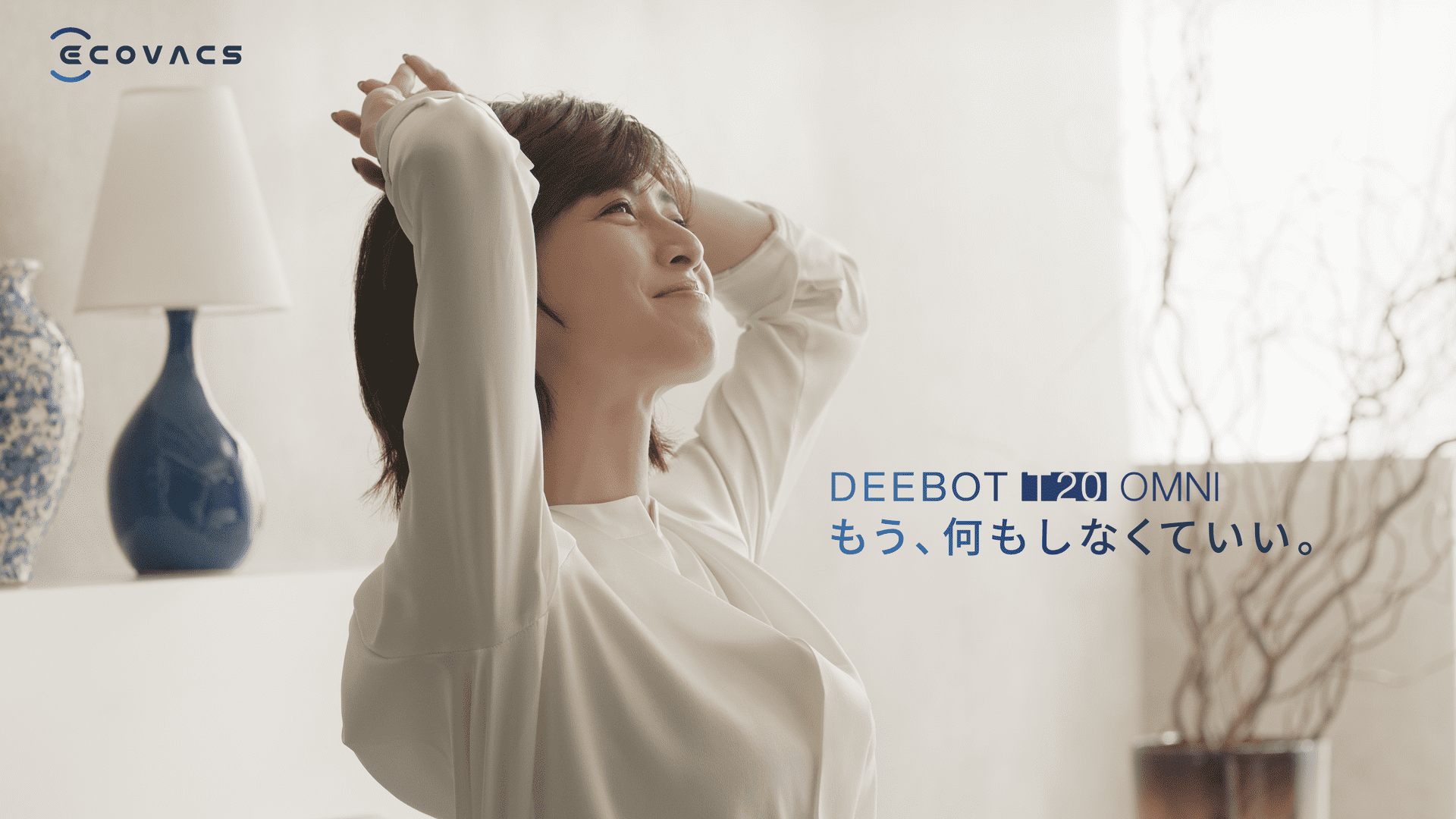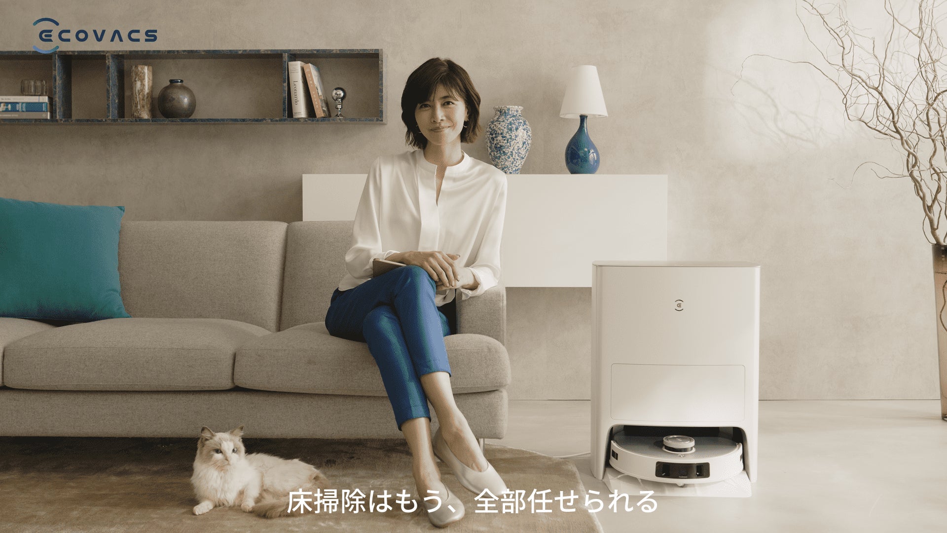 エコバックスのある生活をリアルに感じていただける内容となっており、内田有紀さんが猫と一緒に、「DEEBOT T20 OMNI」によって清潔になった部屋でくつろぐ姿を是非ご覧ください。