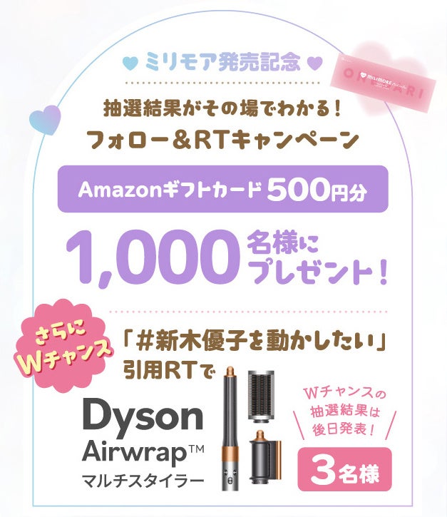 さらにWチャンス!「#新木優子を動かしたい」を付けた引用リツイートで、さらに豪華なプレゼントが当たります。