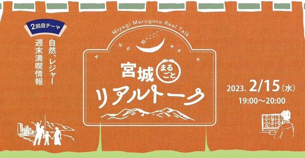 シビレ株式会社(本社:宮城県仙台市 代表取締役/佐藤陽 鈴木翠)が宮城県から受託し企画運営を行なっている「宮城まるごとリアルトーク」を2月15日(水)に配信します。住んでいるからこそ知っている、身近な話題やお得な情報を3週連続で配信する「宮城まるごとリアルトーク」の第2回目!今回は 週末を大々満喫できる「自然、レジャー」について、宮城県内の市町村からゲストをお招きし、移住サイトやパンフレットではなかなか探せないような地元ならではの情報をお話ししていただきます。