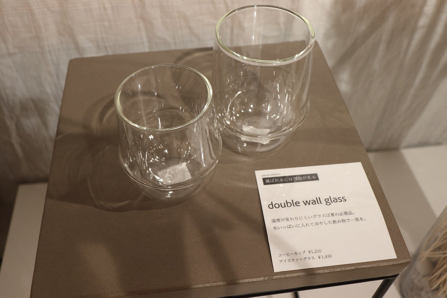 水滴がつきにくく、手への温度も伝わりにくいため冷たいもの、温かいもの両方に重宝できるダブルウォールグラス。ロングセラー商品。