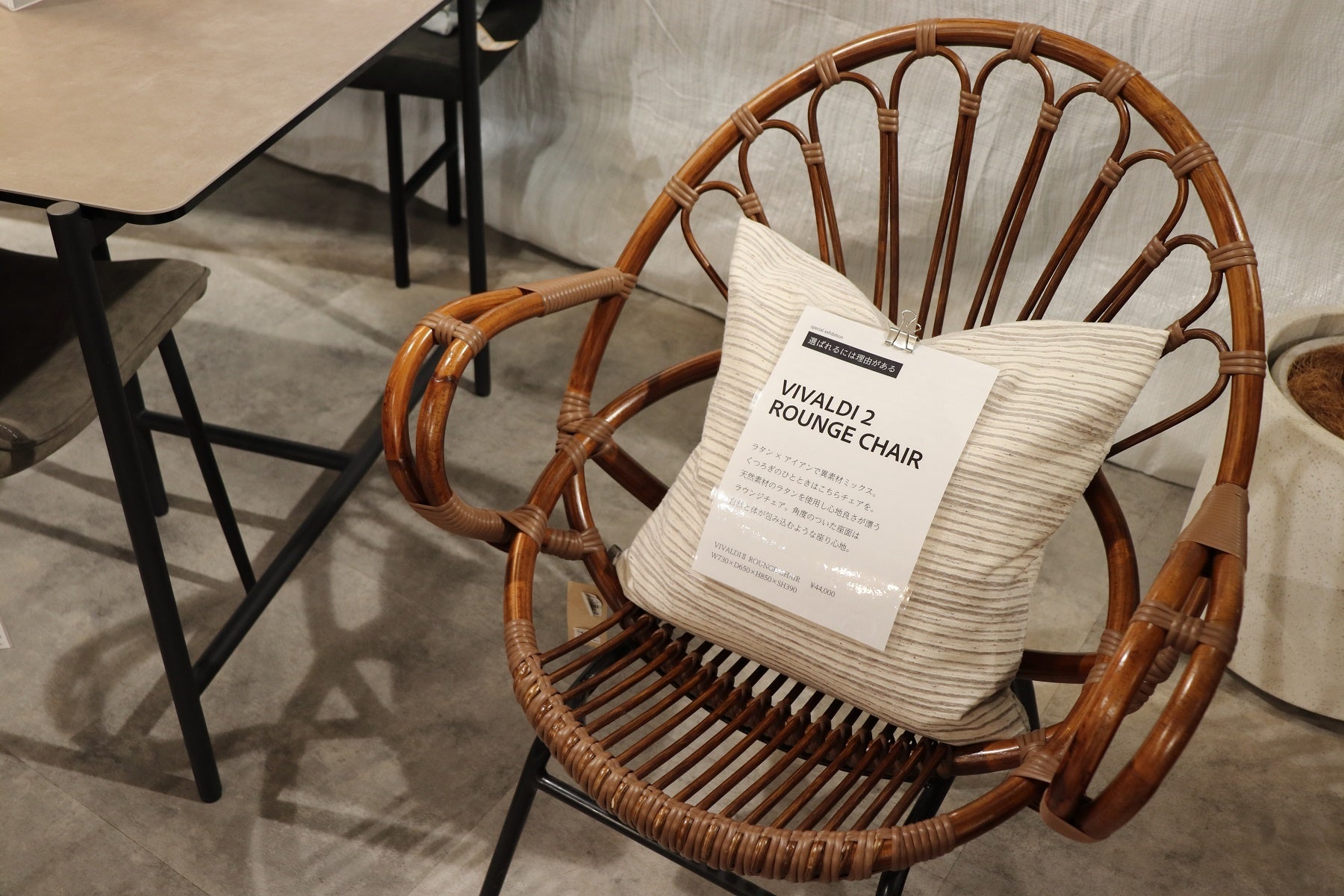 ラタンとアイアンの異素材組み合わせが特徴的なラウンジチェア。空間のアクセントとして大人気の一脚。