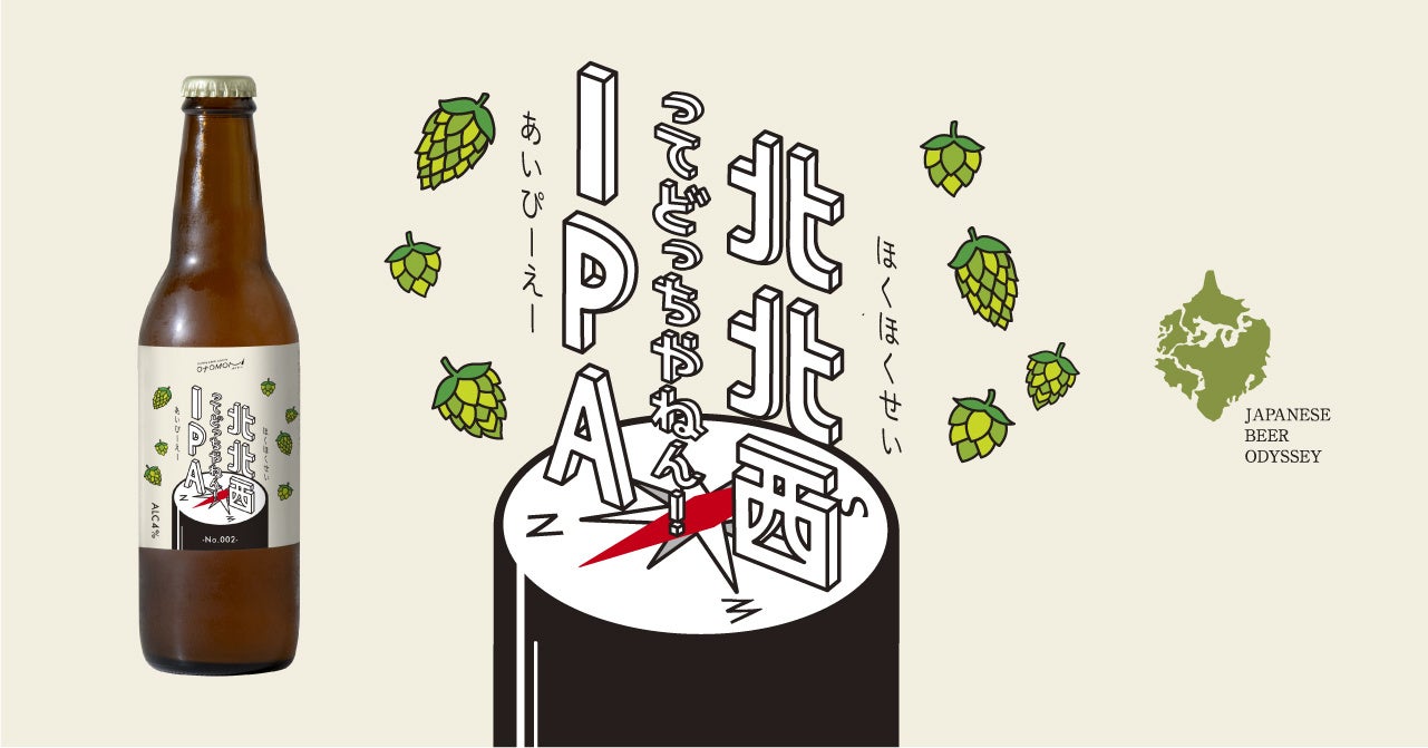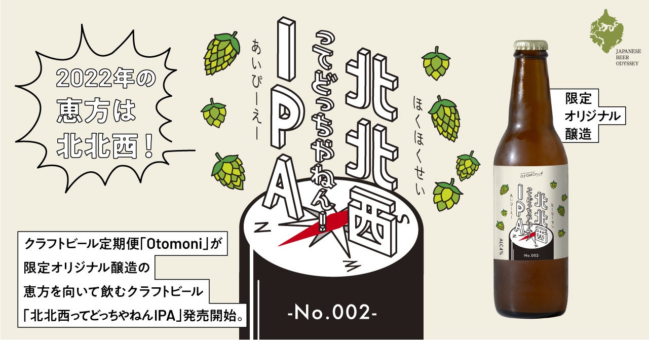 クラフトビール定期便「Otomoni(オトモニ)」を運営するmeuron株式会社(本社:東京都豊島区 代表取締役:金澤俊昌)は、クラフトビールを通じて新旧の日本文化を再発見する体験を定期便で提供する「JAPANESE BEER ODYSSEY」にて醸造するオトモニ限定オリジナルクラフトビール第二弾の「北北西ってどっちやねん!IPA」を発売開始いたします。