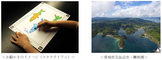 チームラボボーダレス内の《スケッチオーシャン》は、来場者自身が描いた魚の絵が作品の一部となって泳ぎ出す体験型作品です。本プロジェクトでは、描かれた魚の枚数に応じて宮城県気仙沼市舞根湾を拠点とするNPO法人「森は海の恋人」へ寄付金が贈られ、自然環境保全に活用されます。また、《スケッチオーシャン》では気仙沼・舞根湾を代表する生き物の一つであるカタクチイワシも泳いでいます。カタクチイワシを含めたさまざまな魚を描いて泳がせることを通じて、楽しみながら海の豊かさ・大切さを体験していただくことができます。