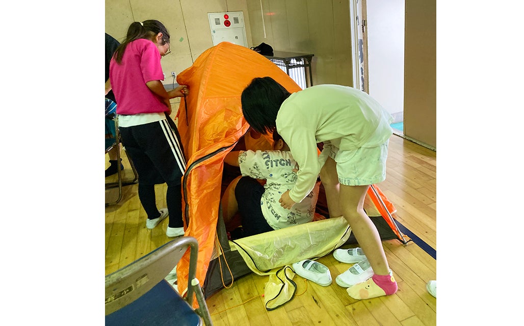 社員が当時の映像や実際の登山で使用した道具を見せながら、「挑戦する心」や「仲間の大切さ」を語ったり、生徒たちにテントに入ったり防寒具を身に着けたりしてもらい、冒険を疑似体験してもらいます。参加した生徒からは「チャンスを挑戦に変えるのは自分次第だと思った」「自分にしかできない経験をしたい」といった声が寄せられ、チャレンジする心を養うことに貢献しています。