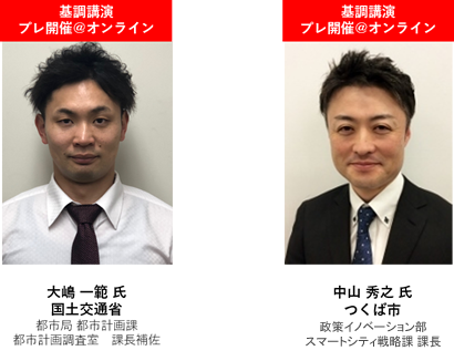 基調講演は国土交通省 大嶋一範氏による、自治体、民間、大学等の連携による交通、防災、環境、観光等の分野横断的なスマートシティの取組やモデル事業の実施について、また、国家戦略特別区域として区域指定を受けたつくば市からは、中山秀之氏が登壇し、「まるごと未来都市」の実現を目指す「つくばスーパーサイエンスシティ構想」についてご講演いただきます。