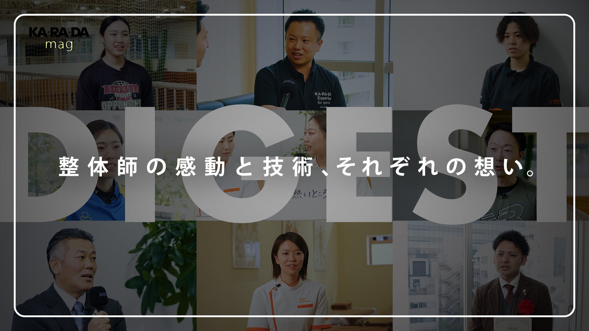 整体師たちのインタビューを通して浮かび上がるのは、お客様のお身体のお悩みに寄り添い、アスリートの身体の最大パフォーマンス向上を目指し真摯に向き合っていること。技術的なフォローが当たり前である一方で、彼らが気持ちの面でも共感し、自分事として捉えているという共通点です。