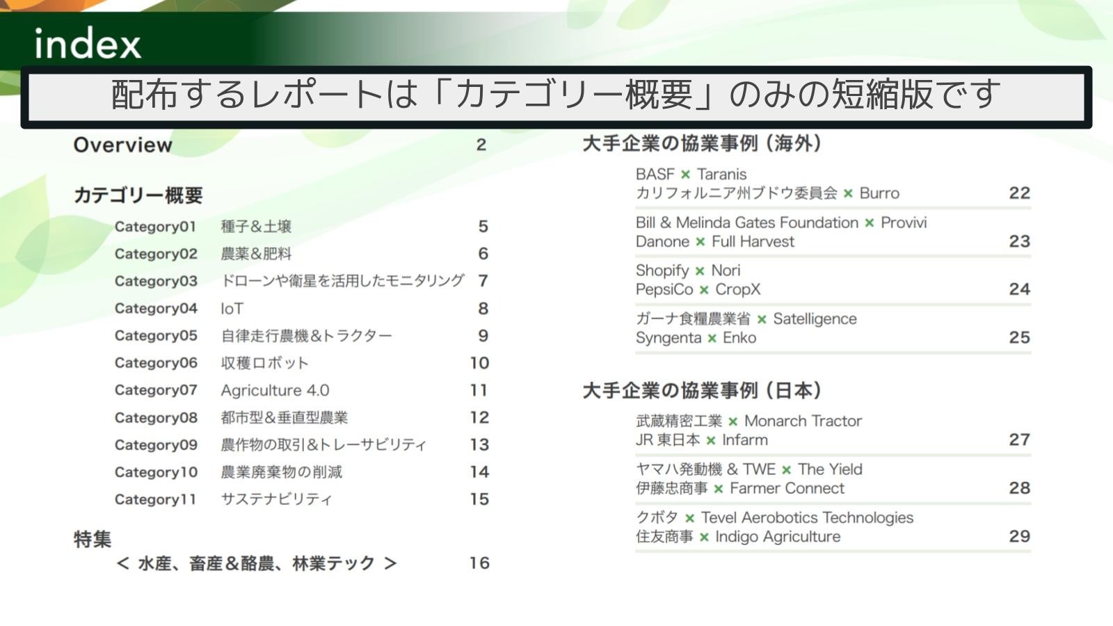 本レポートでは、アグリテックをテーマに取り上げ、同分野のスタートアップ企業の事業概要や大手企業との協業事例を紹介します。特集ページでは、アグリテックの中でも言及されることが比較的少ない「水産、畜産&酪農、林業」分野のスタートアップ企業をリストアップしました。