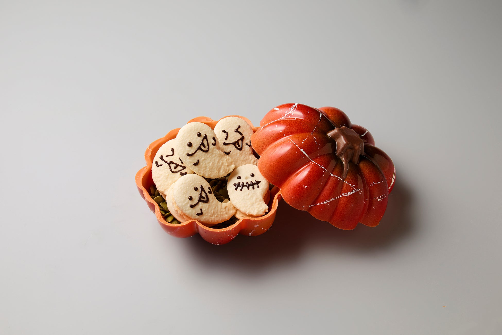 秋の訪れとともに登場する、遊び心あふれるスイーツ「パンプキンポッド」は、見た目も味わいもまるで小さなかぼちゃそのもの。中には、季節ごとに異なるサプライズが隠されています。10月のハロウィンシーズンには、愛らしい表情のおばけマカロンがひょっこりと顔を出し、パーティー気分を一層盛り上げます。そして11月からは、秋の深まりを感じさせるかぼちゃマカロンが登場。ひとつで二度楽しめる、贅沢なスイーツ体験をご提供します。見た目のインパクトはもちろん、素材にもこだわり、かぼちゃの自然な甘みと香ばしさを活かした優しい味わいに仕上げました。テーブルを華やかに彩る「パンプキンポッド」で、季節の移ろいをお楽しみください。