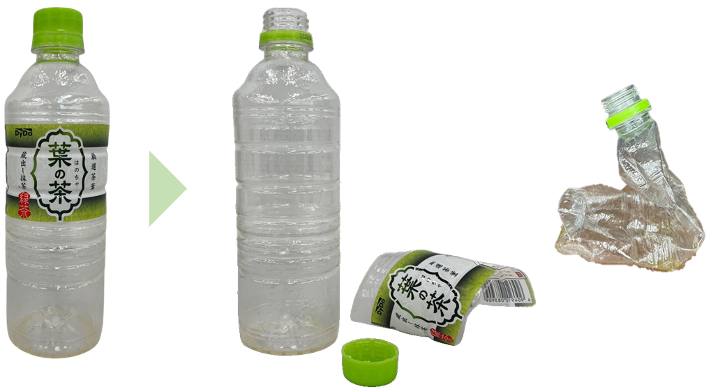 リサイクルしやすくするために、使い切ったペットボトル本体、