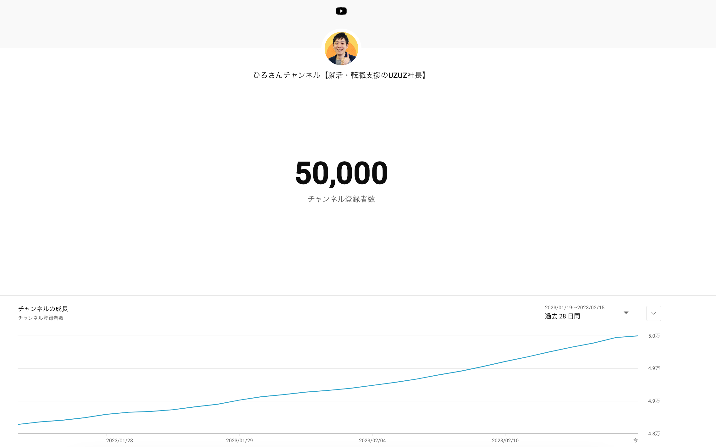 就活YouTube【ひろさんチャンネル】登録者が5万人を突破!昨年の再生数は合計1,200万回超え