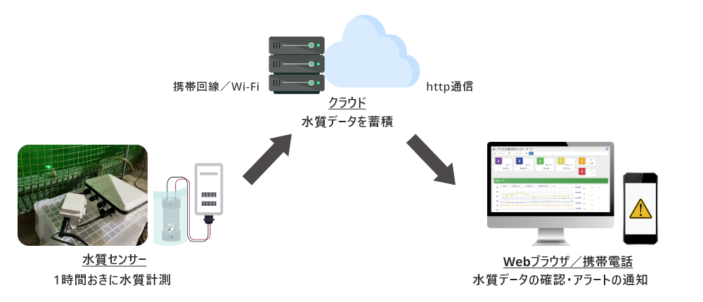 海上養殖や陸上養殖、河川や池の水質を24時間リアルタイムで監視し、異常値が出たタイミングで通知が送られるIoT水質センサー。実際に利用いただいているお客様からのご要望を反映した開発を行い、新機能としてリリースいたします。
