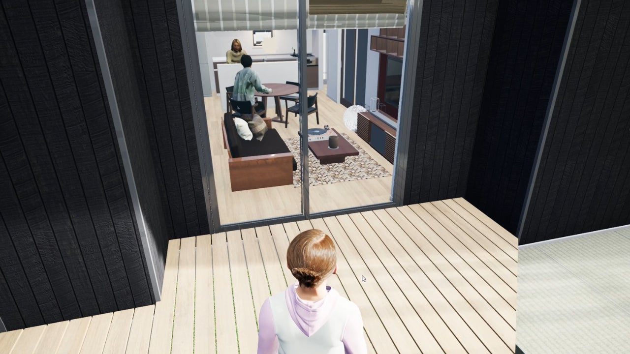 JIBUN HAUS.とスパイラルセンスが、2022年3月にリリースした「バーチャルモデルハウス」とは、ゲーム開発ツール「Unreal Engine(アンリアル エンジン)」によって制作された高品質な3DCGモデルのバーチャルモデルハウスです。今回、この「バーチャルモデルハウス」が大幅にアップデートされ、夫婦や子どもなど、家族の構成に応じたアバターが作られ、アバターとして仮想住宅に同時接続が可能になりました。これにより、家族全員がアバター化して同時に仮想住宅に入り、ゲームコントローラーを使って家の中や外を自由に歩き回ることができるようになりました。アバターは身長の異なる4種類のアバターから選択することができ、より自分の視点に近いところから暮らしの体験をすることができます。同時接続の実現により、家族全員で暮らす疑似体験をしながら家づくりを行う「メタバース家づくり」が可能になりました。