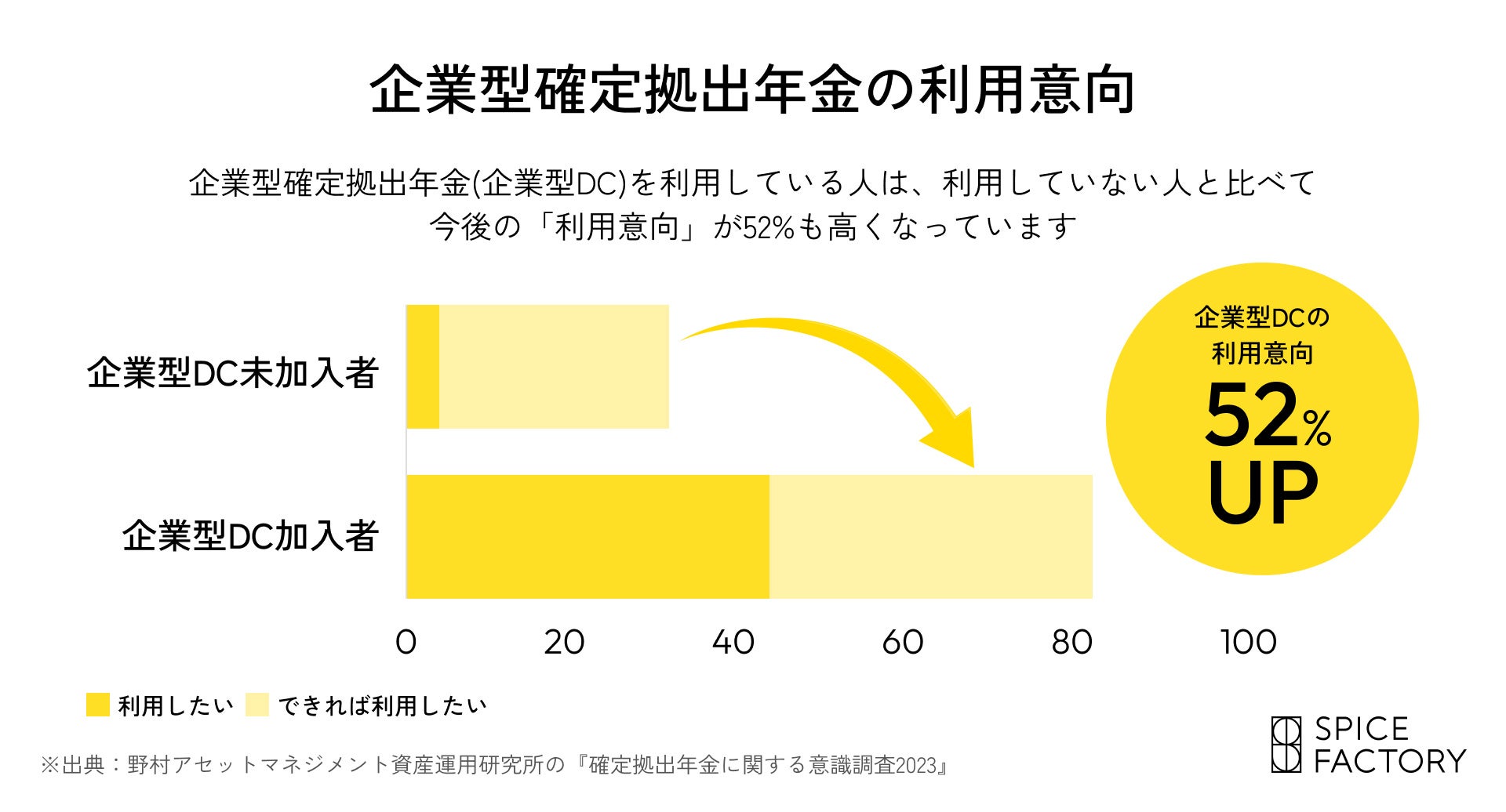 企業型確定拠出年金を利用している人は、利用していない人と比べて今後の「継続利用意向」が52%も高くなる