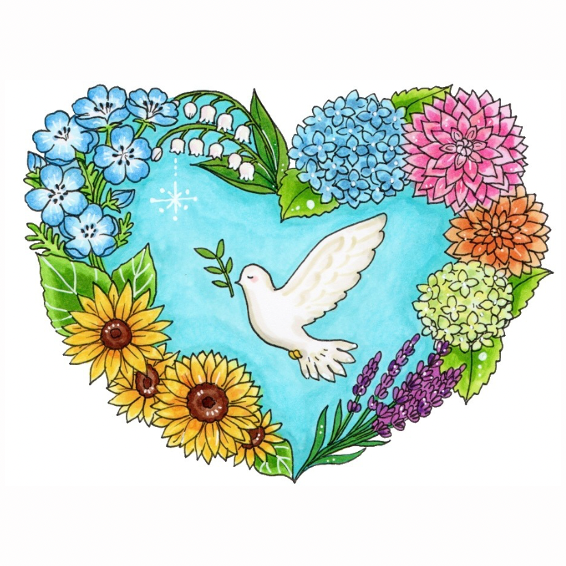 中央には、平和の象徴である白い鳩をデザインしました。