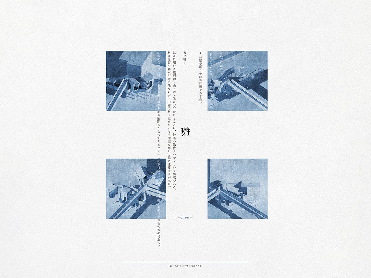 2001年愛媛県生まれ。大阪芸術大学芸術学部建築学科を卒業。京都市立芸術大学美術研究科環境デザイン専攻在籍中。幅広い分野の物事を空間へ翻訳し、新しい建築の在り方を模索している。用や美だけでない「複数の要素が共存しあう建築」を目指す。