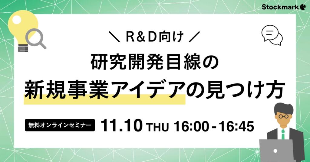 【11月10日(木) 無料セミナー】「R&D向け 研究開発目線の新規事業アイデアの見つけ方」を開催(ストックマーク主催)