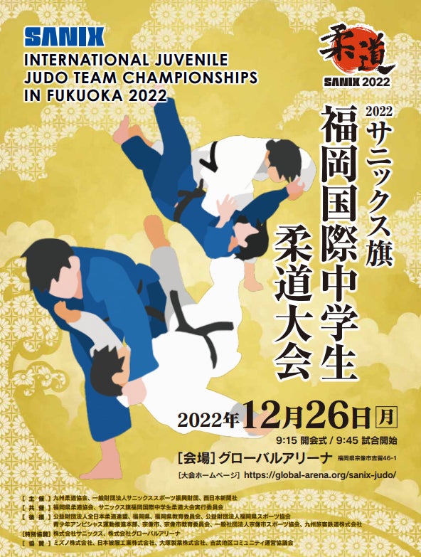株式会社サニックス(本社:福岡県福岡市、代表取締役社長 宗政 寛)は、12月26日(月)、グローバルアリーナにて開催される「2022サニックス旗福岡国際中学生柔道大会」に協賛いたします。