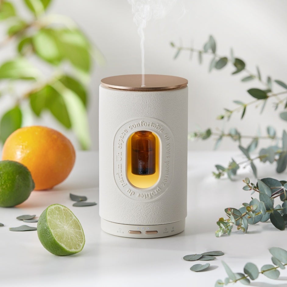 水を使用しないネブライザー式なので、アロマ本来の香りをそのまま楽しむことができます。約46dBという静音設計に加え、濃度切り替え、タイマー機能、転倒時の自動オフ機能もついているので、睡眠中やリラックスタイムでも安心してご利用いただけます。コードレスだから、寝室以外にもリビング、デスク、玄関など、好きな場所で使用可能なのも嬉しいポイント。