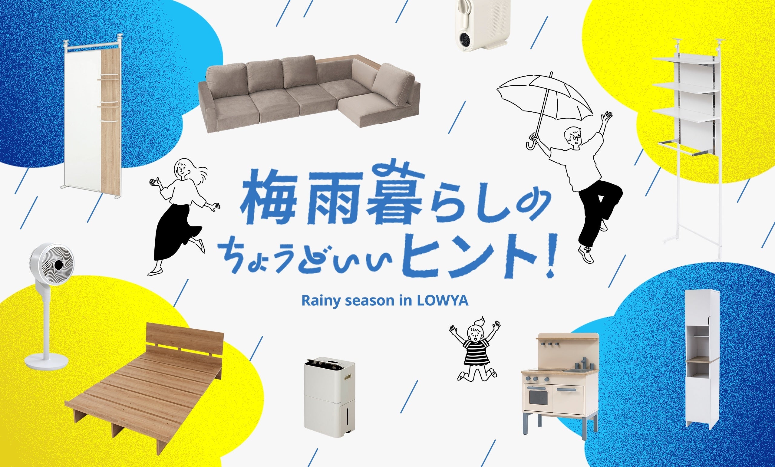 そこで今回はお客様の悩み多き“梅雨暮らし”が少しでも快適になる、LOWYA流のハックを生活の各シーン毎にご紹介します。