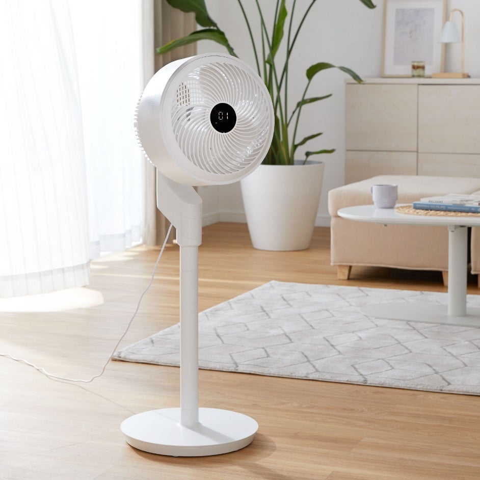 インテリアに溶け込むスマートなデザインのサーキュレーターが新登場!上下80°、左右90°(3段階)にヘッドが回転する”3D送風機能”でお部屋の隅々まで風を送るため、室内干しの洗濯物にもきちんと風が届きます。静音性・耐久性に優れたDCブラシレスモーターを採用。他にも12段階の風量調節機能やナイトモード、2段階の高さ調節など機能もバッチリ。前面カバーやファンを取り外せるので、手軽にお手入れができます。
