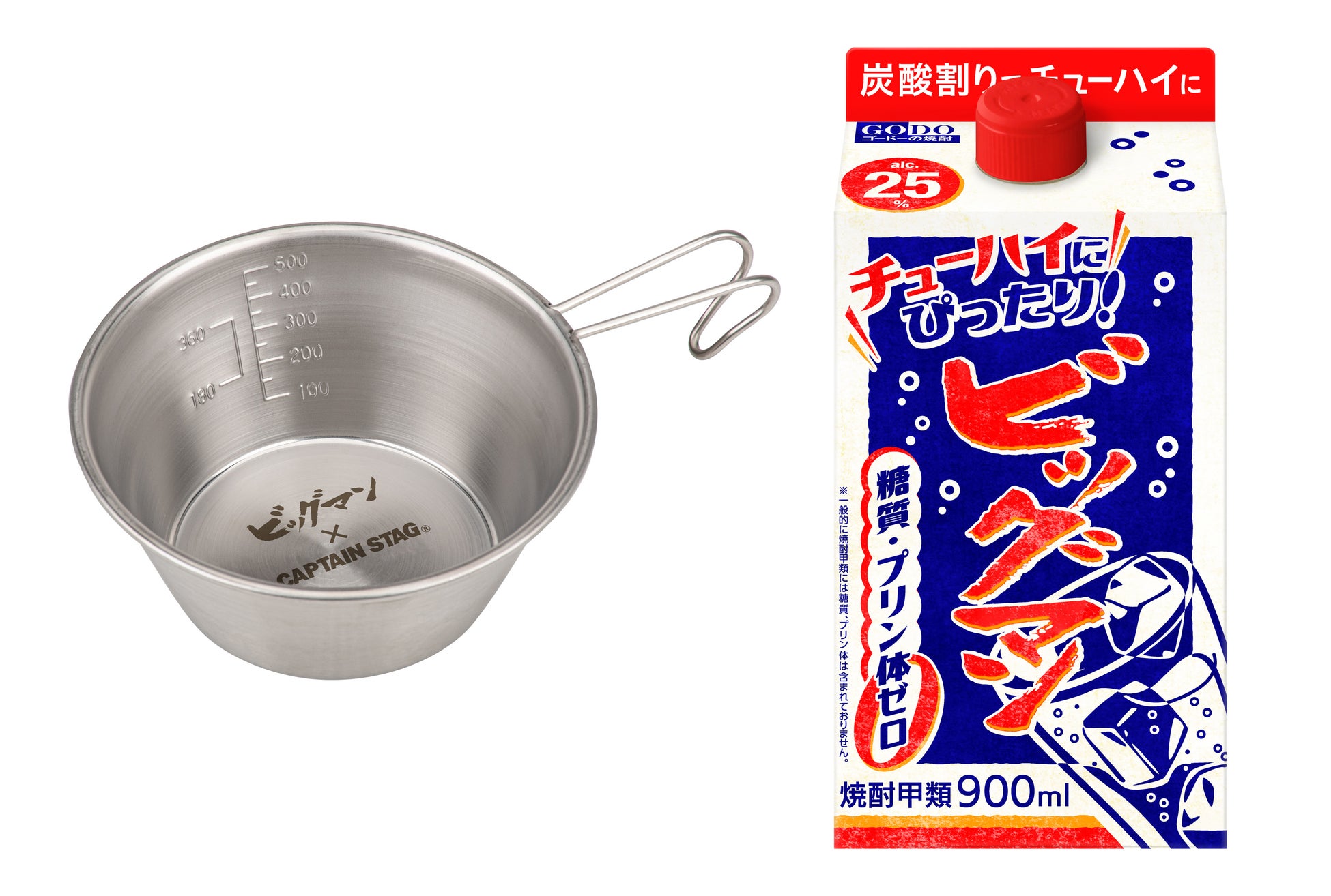オエノングループの合同酒精株式会社(代表取締役社長:西永裕司 本社:東京都墨田区)は、甲類焼酎「ビッグマン」とアウトドアメーカーキャプテンスタッグ株式会社(本社:新潟県三条市 社長:髙波文雄)がコラボしたオリジナルグッズ「ビッグマンロゴ入りステンレスビッグシェラカップ」と、「ビッグマン」25% 900mlパックのセットが100名様に当たる、Twitter限定「#外で飲もうぜ!ビッグマン×CAPTAIN STAG コラボキャンペーン」を11月1日(火)から11月30日(水)までオエノングループ公式Twitterアカウントで実施します。