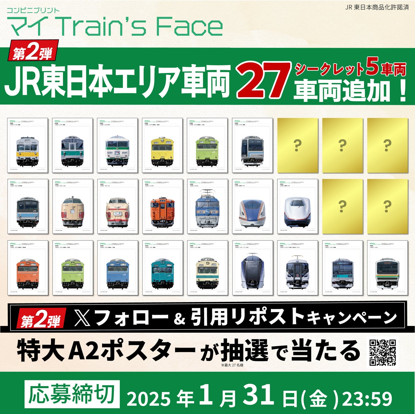 全国コンビニ(ファミリーマート、ローソン、ミニストップ)で利用可能なコンビニプリントサービス『マイTrain's Face』に27車両が新たに追加されました。これを記念し、第2弾キャンペーンを開催いたします!