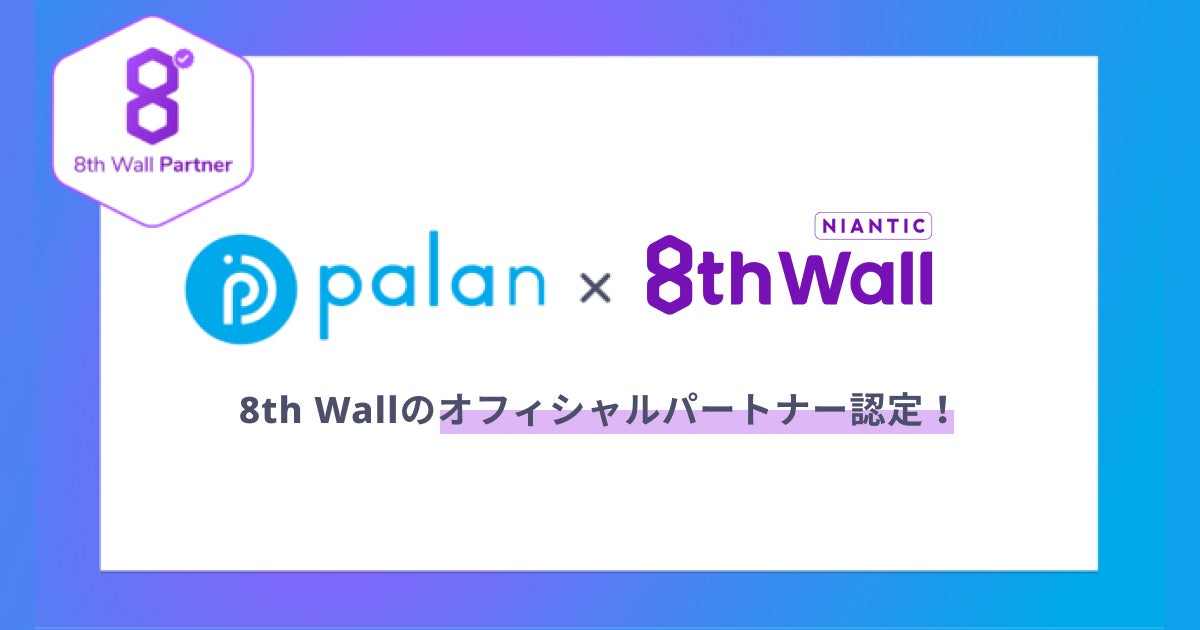 WebAR・WebVRのシステム開発を行う株式会社palan (本社:東京都渋谷区、代表取締役:齋藤 瑛史)は、アメリカに本社を置く8th Wall社のオフィシャルパートナーの一員となりました。高度なWebARの実現が可能になり、国内外における更なる展開を目指します。