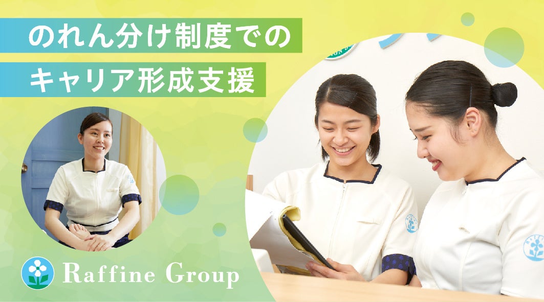 のれん分け制度では、ラフィネグループの既存店舗の運営をお任せするため、ゼロから集客する必要がなく、初期投資費用もかかりません。実際に運営を行う上での悩みを相談したり、指南を仰いだりすることができるので、安心して自分のお店を持つことができます。ラフィネグループで培った経験を存分に活かし、リラクゼーションスペースの独立開業という夢をかなえることができます。のれん分け制度導入を通じて、セラピストの多角的なキャリアアップへの支援に努めて参ります。