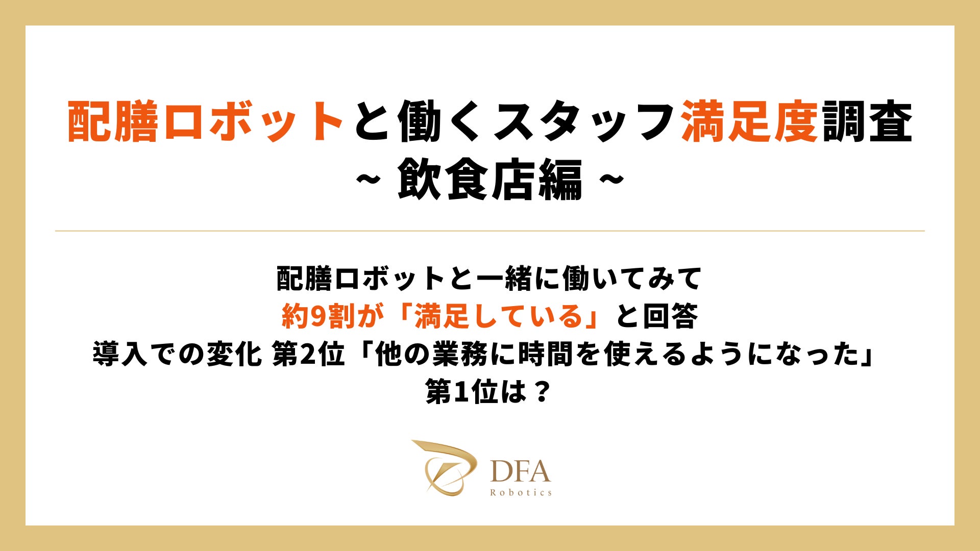飲食店DXを推進するロボティクスソリューションカンパニーである株式会社DFA Robotics(本社:東京都渋谷区恵比寿、代表取締役:波多野昌昭)は、配膳ロボットと一緒に働いている、飲食店のホールスタッフ101名を対象にアンケート調査を実施しました。