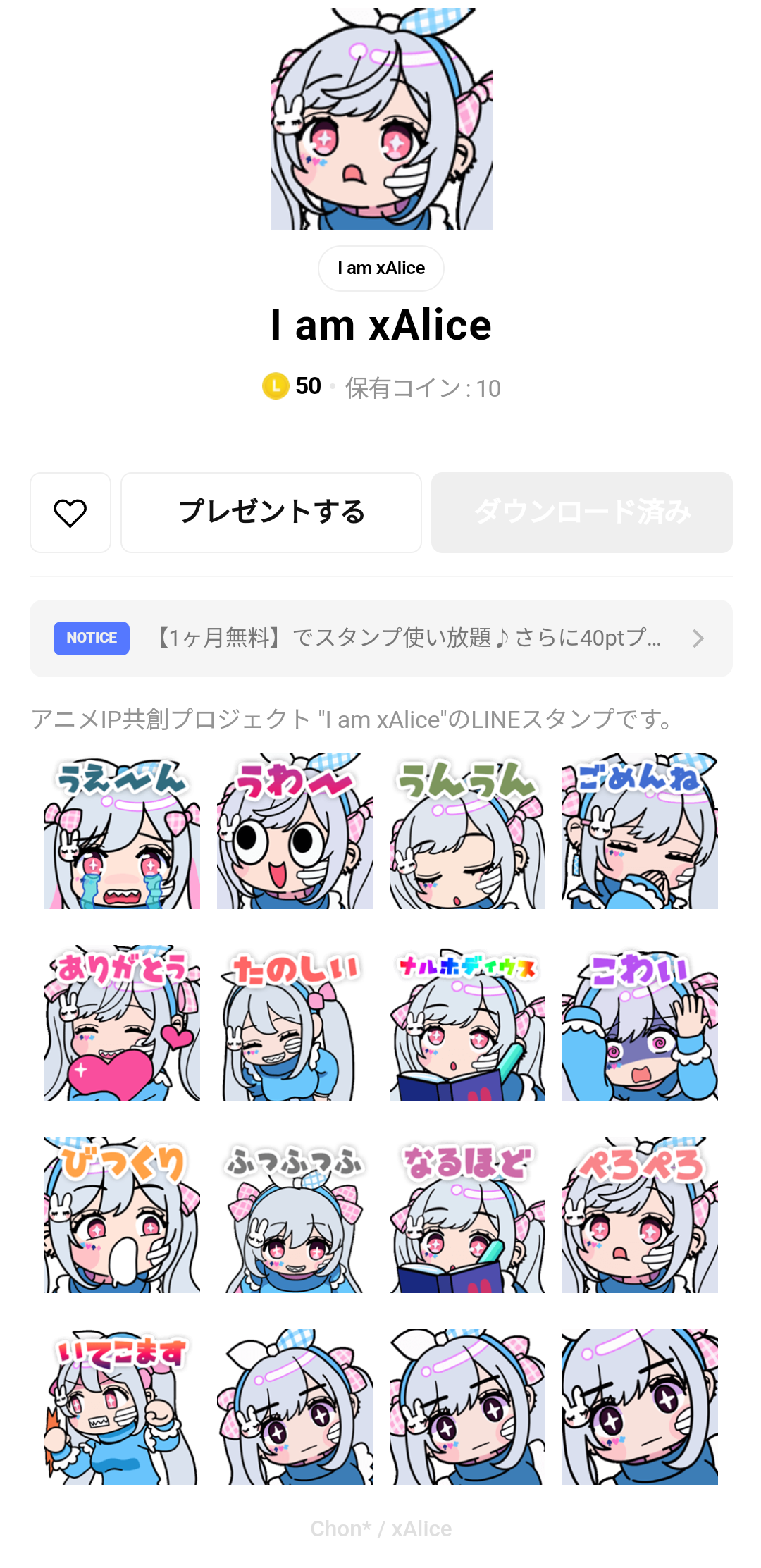 I am xAliceの主人公、"Alice"のデザインをデフォルメしたイラストのLINEスタンプです。