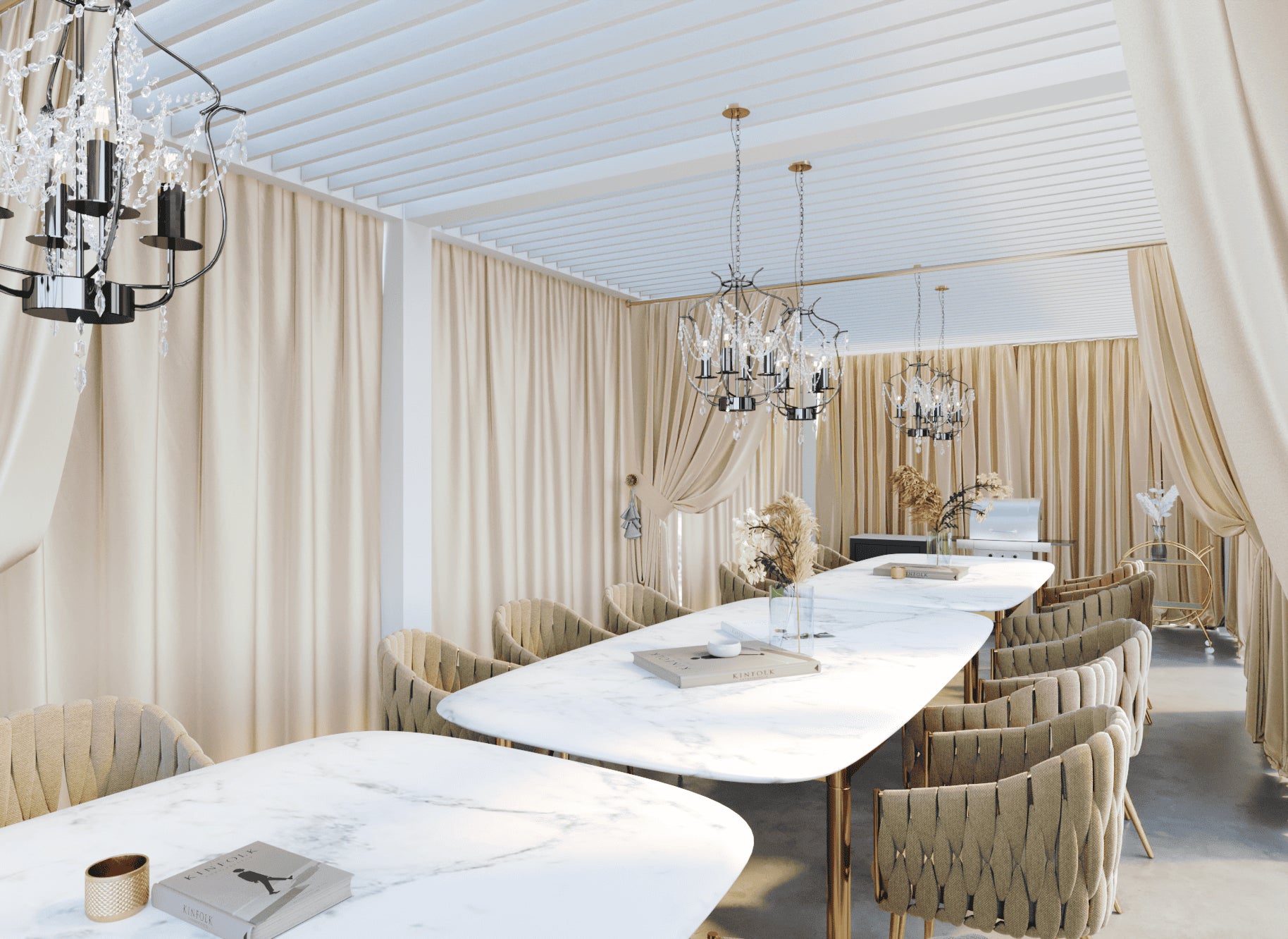 店内には10名席と18名席の2つの席をご用意。海外から輸入したラグジュアリーな家具と雨よけや日よけの対策もされたパーゴラを使用し、リゾート感&非日常空間を演出。BBQ 機材はすべて完備し、ルーフトップの開放的な雰囲気と少人数から大人数までご利用できます。プライベート性の高い空間で新しいバーベキューパーティー体験を提供いたします。