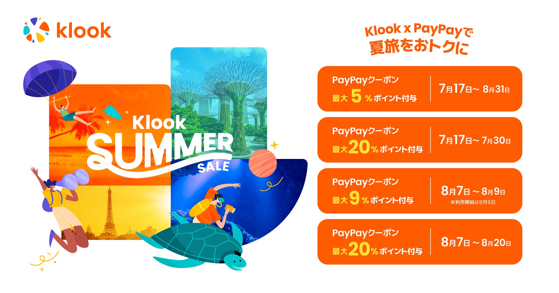 PayPay支払いで夏のお出かけがお得に!Klookサマーセールで最大20%ポイント還元!