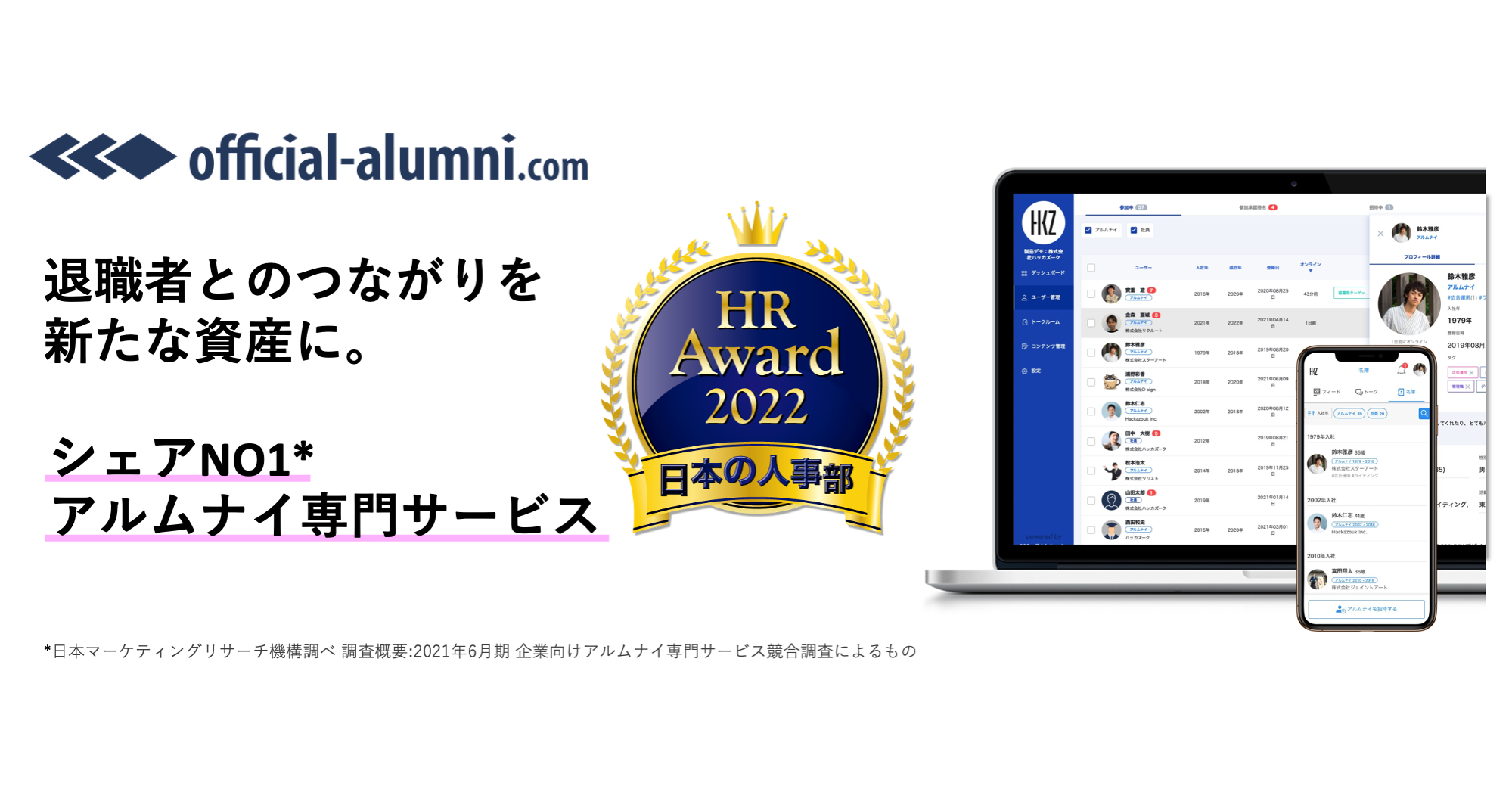アルムナイ専門サービスシェアNo1の『Official-Alumni.com』、日本の人事部「HRアワード2022」にて入賞