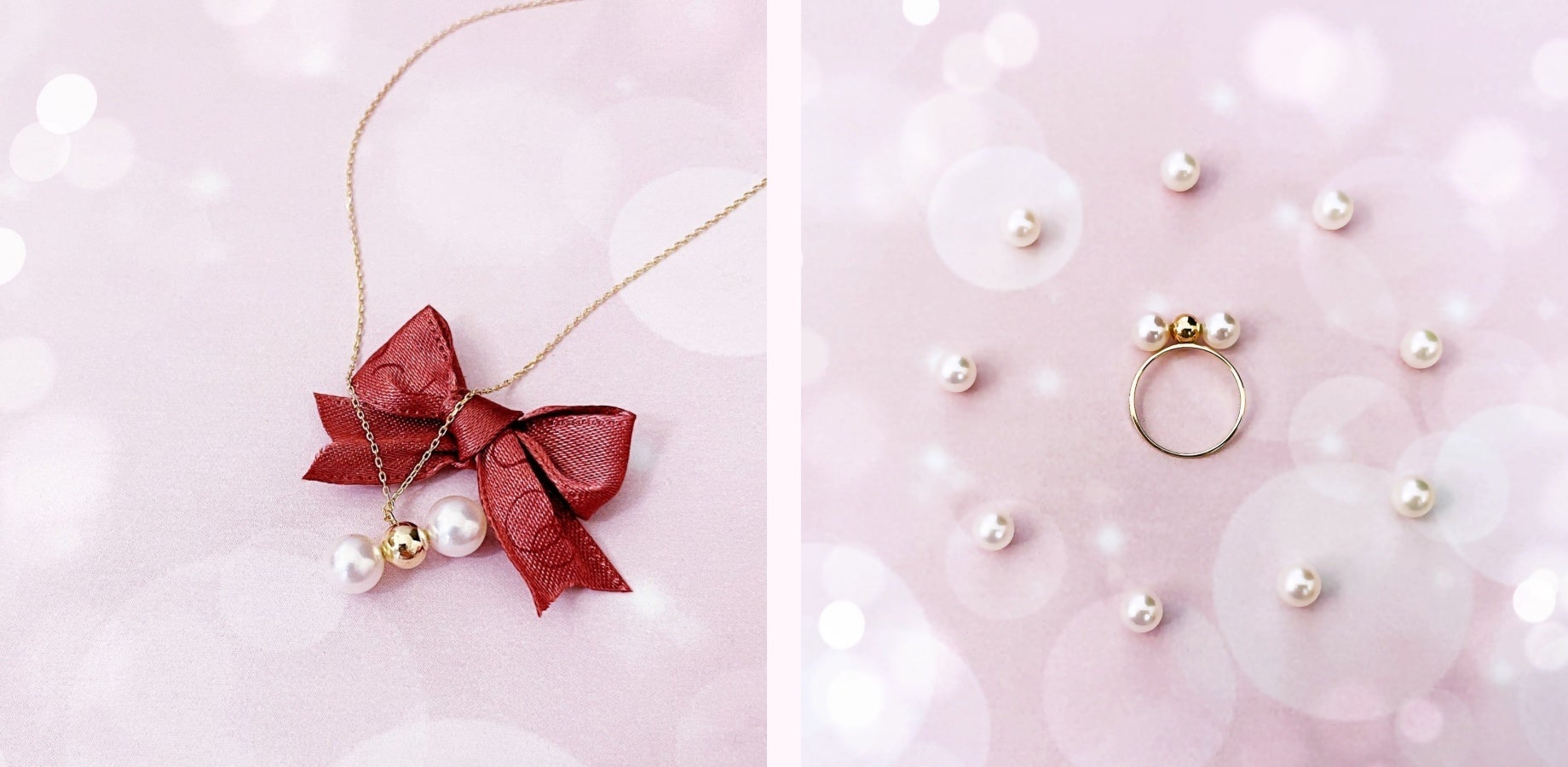 <上質あこや真珠×ゴールド>ギフトシーンにぴったりなリボンモチーフジュエリー