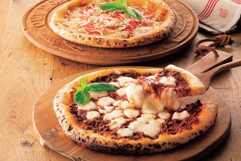 国産小麦を100%使用した自家製生地にホエイを練りこむことでもちもちとした食感が生まれ、美味しいだけでなく、低カロリー・高タンパクな "身体に優しい" ピザをお楽しみいただけます。