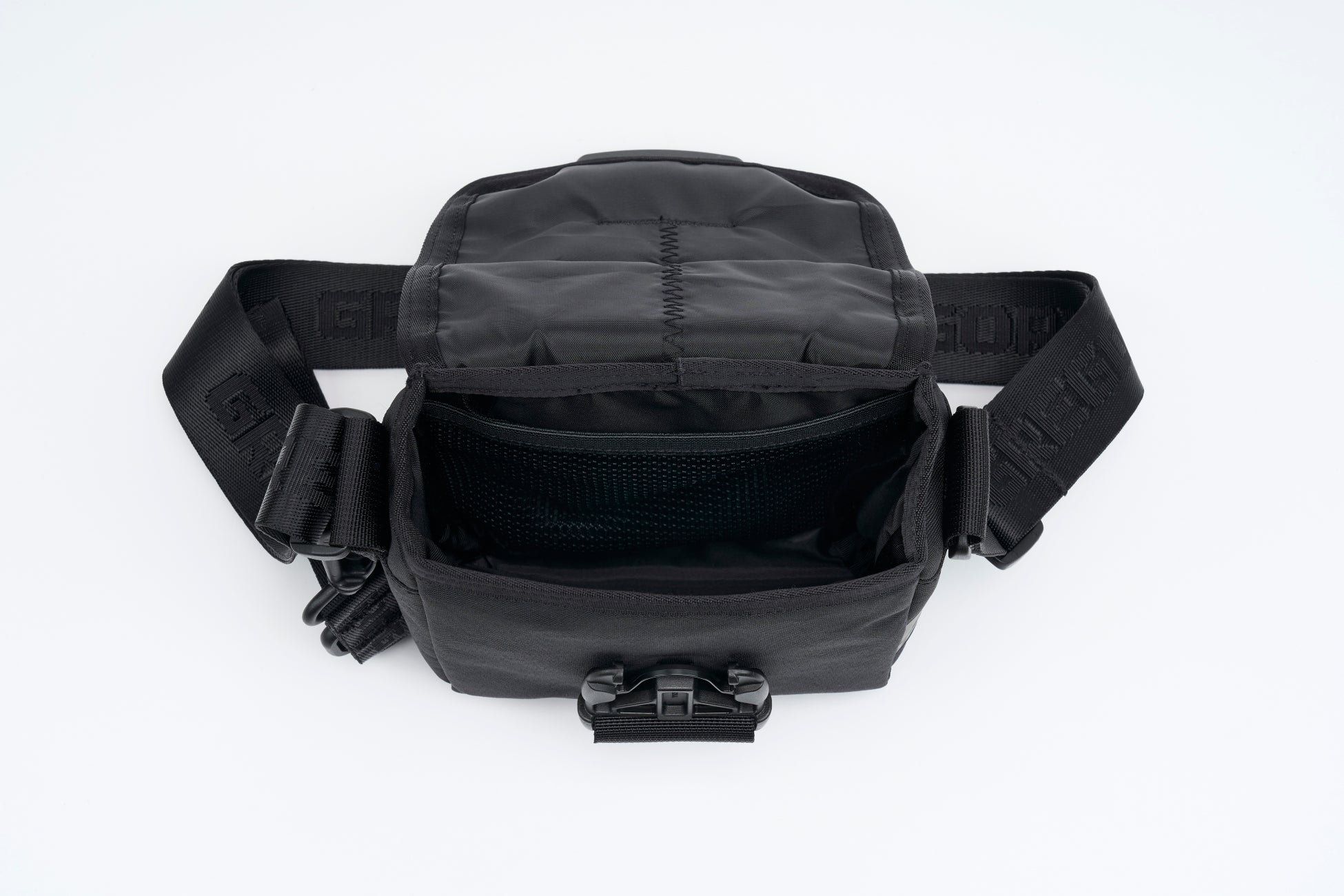 背面にオープンポケット、内部にメッシュポケットとコンパクトでありながら機能的なショルダーポーチは、ちょっとした外出に便利。