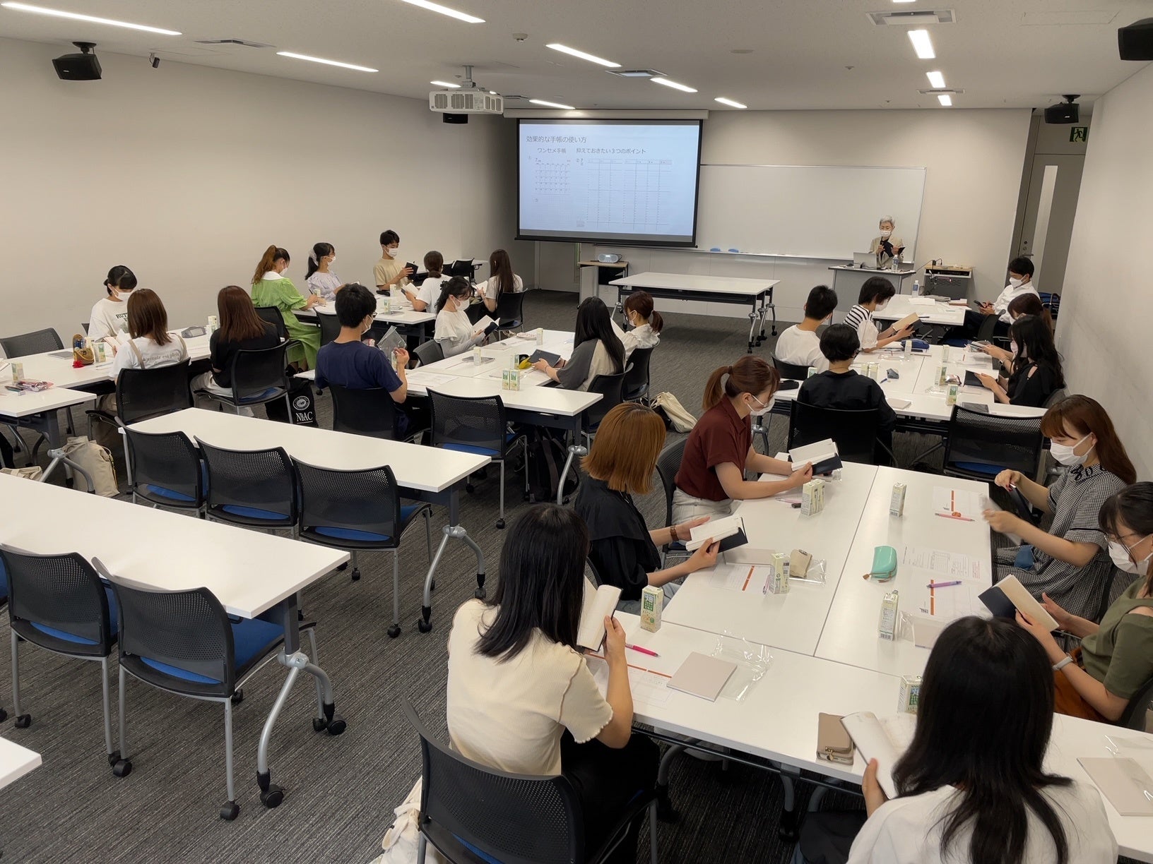 手帳製造・OEMを手がけて68年の伊藤手帳株式会社(本社名古屋市:代表取締役社長 伊藤 亮仁 以下伊藤手帳)は、スマホ世代の大学生が考案した「ワンセメ手帳」を使った「大学生のためのタイムマネジメント講座(以下 本講座)」を7月14日(木)14時15分より愛知大学名古屋キャンパス講義棟L406教室にて行い、当社広報担当者がタイムマネジメントの重要性、上手な計画の立て方や手帳の書き方を解説しました。