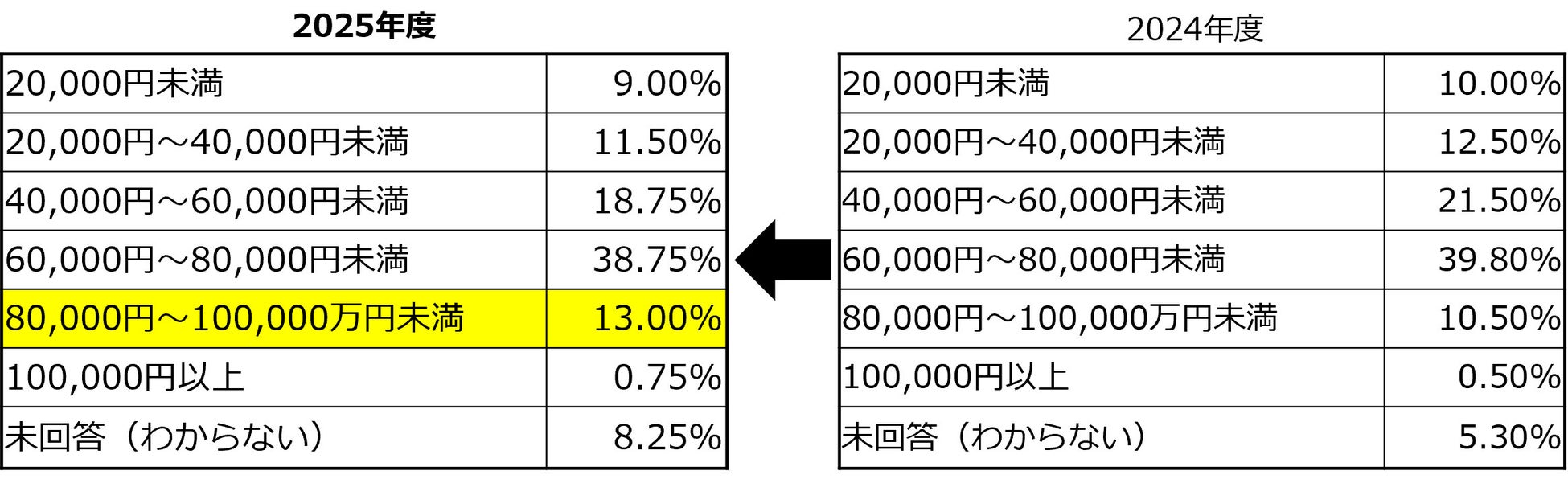 昨年と比較すると「80,000円~100,000万円未満」が増加傾向にあり、「40,000円~60,000円未満」が減少傾向にありました。高価格であっても機能や安全性などを考慮したランドセル選びをしている傾向があるかと思われます。