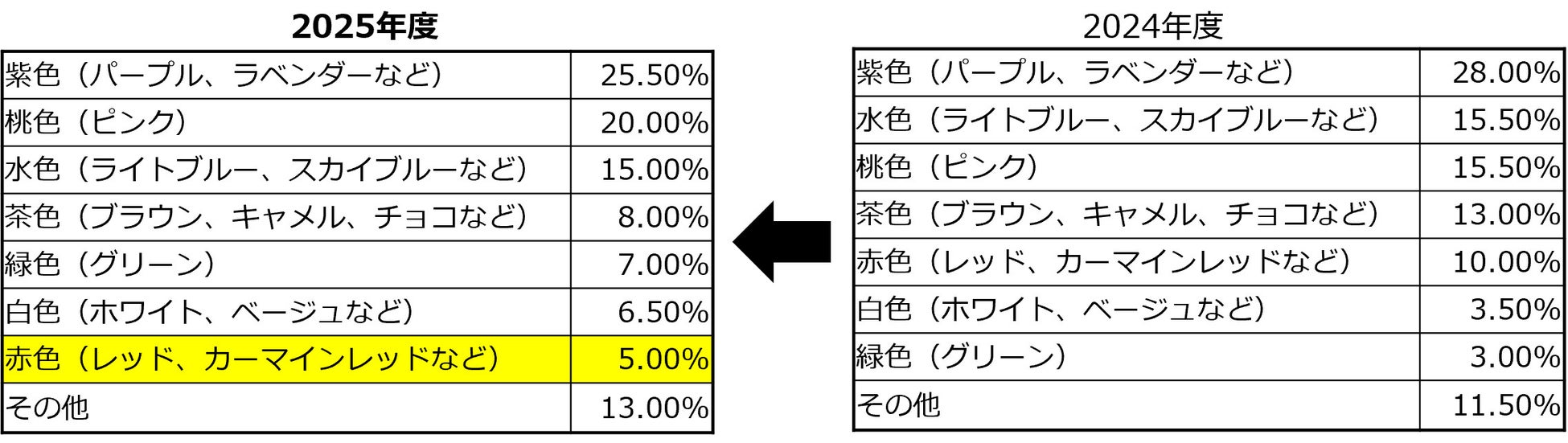 一方で「女児・幼稚園年長」は、様々なカラーが購入されており、従来のランドセルイメージである「赤色」は減少傾向でした。