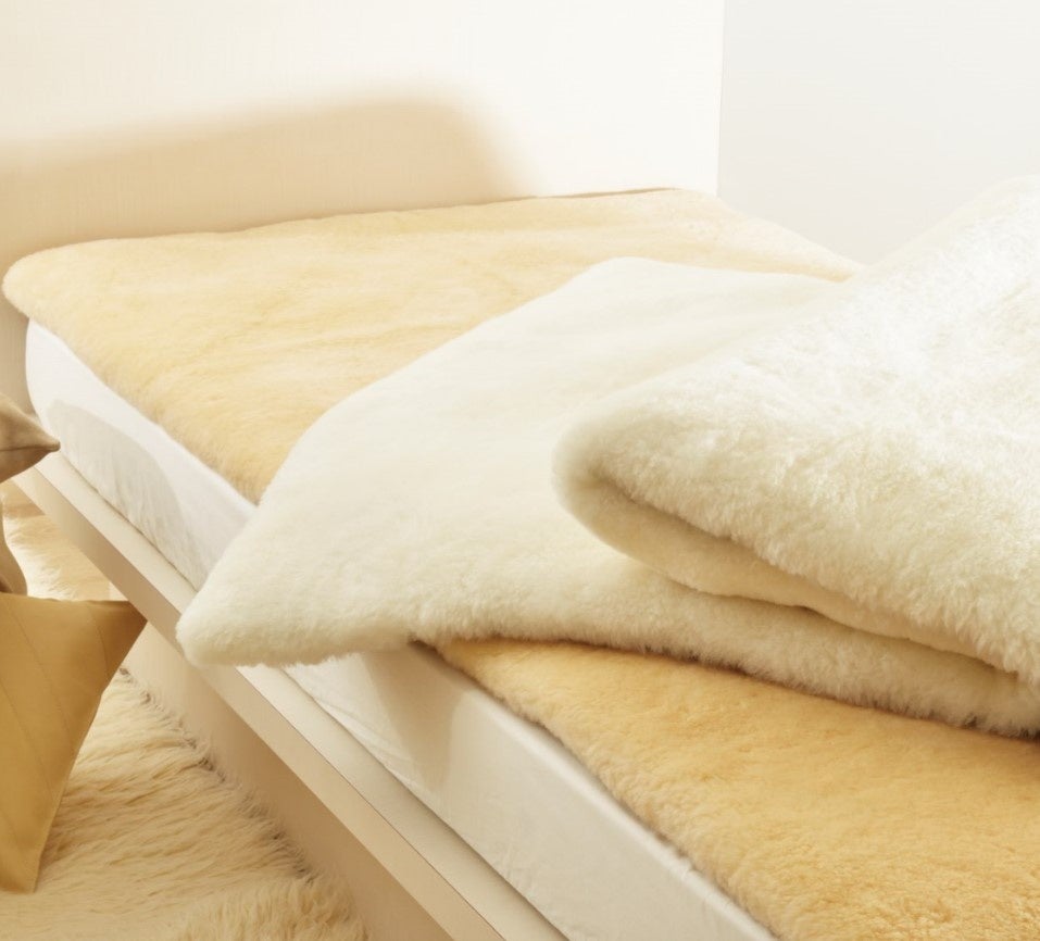 1 平方センチメートルにつき 3000~3300 本の羊毛が生えているムートン。カールした繊維が複雑に絡み合うことで、空気の層が形成され、保温効果を高めています。就寝時のヒヤッとした感覚がなく寒い時期でも暖かいのが特長。