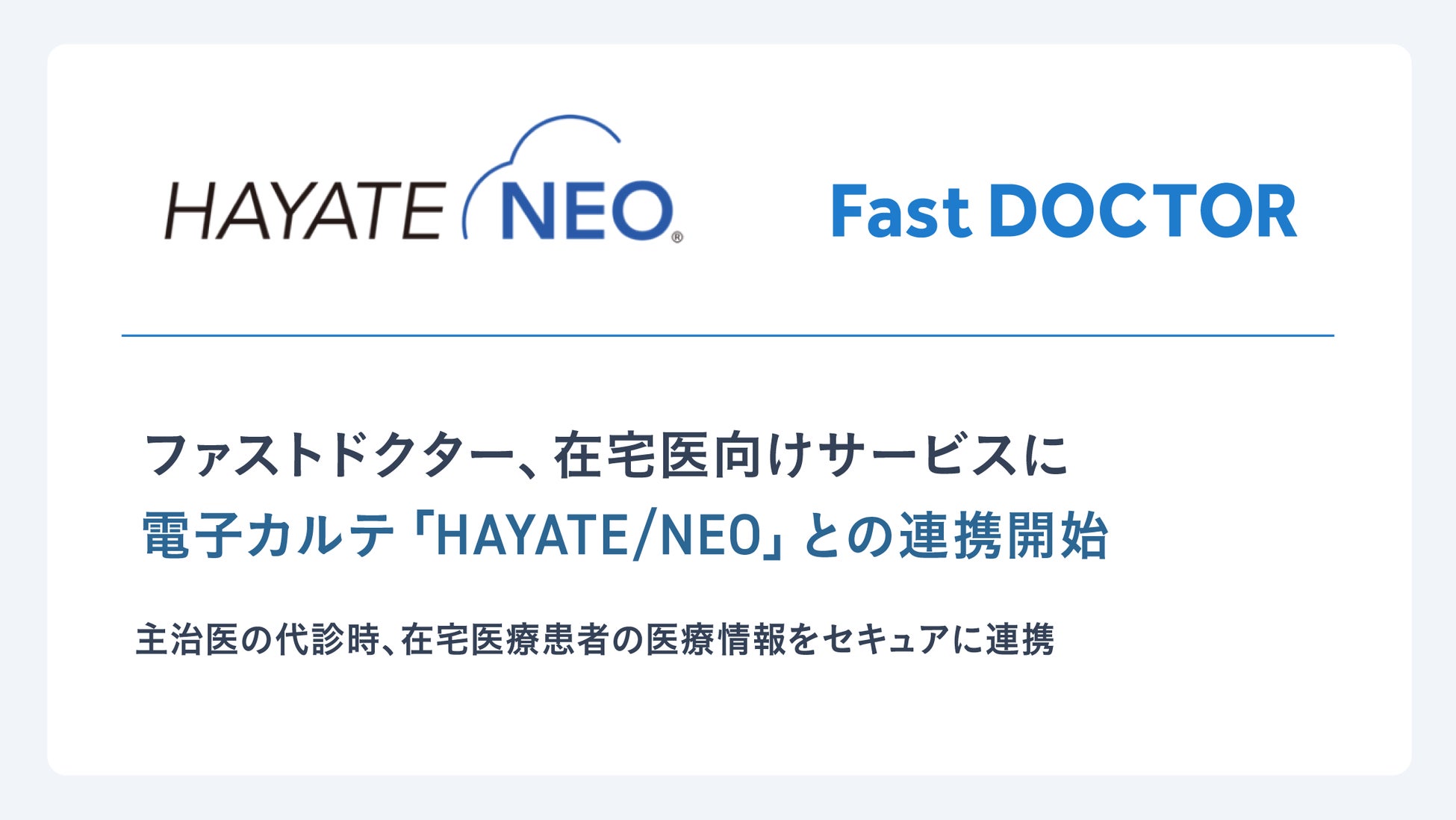ファストドクター、在宅医向けサービスに電子カルテ「HAYATE/NEO」との連携開始