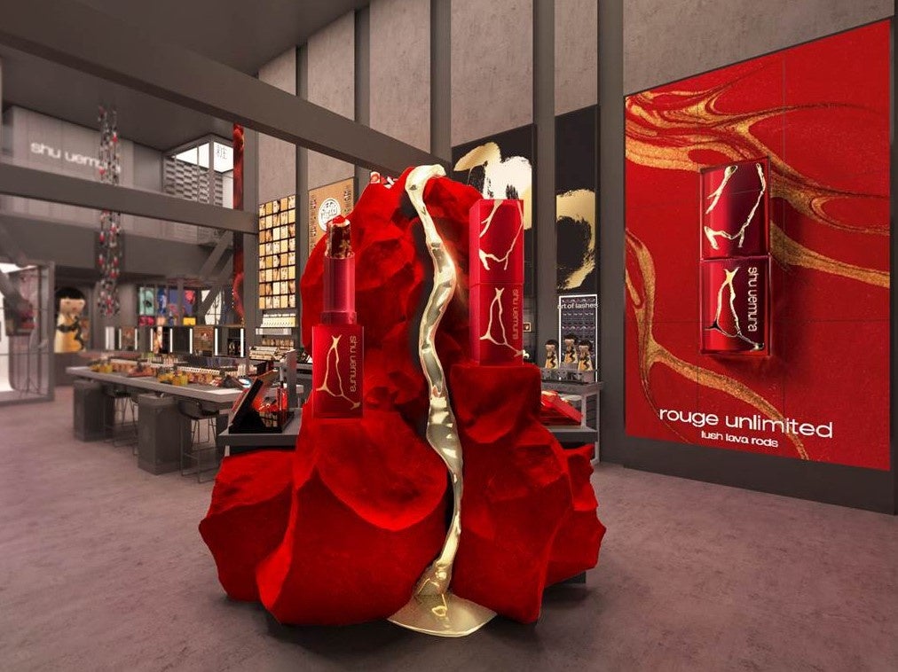 ルージュ アンリミテッド ラッシュ ラヴァ レッド コレクションにインスパイアされた、巨大なオブジェが登場。