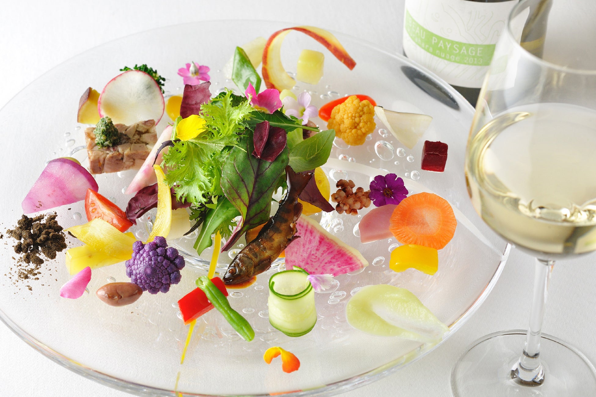 メインダイニング「OTTO SETTE」では、創意溢れるシェフ自身が産地に赴き、そこで出会った食材を使ったイタリア料理を提供しています。こだわりは、恵まれた自然環境だからこそ育まれる瑞々しく色鮮やかな野菜をふんだんに使い、野菜本来の美味しさを最大限に引き立てることです。季節ごとにその時期ならではのコースメニューに仕立てているので、季節感を感じながらディナーを楽しめます。料理は、ワインとのマリアージュを楽しむのもおすすめです。レストランのワインセラーには、提携ワイナリー「ドメーヌ ミエ・イケノ」のヴィンテージをはじめ、山梨県とイタリアのワインを約2000本取り扱っています。大地の恵みを享受した秀逸な素材をアレンジしたイタリア料理と、経験豊かなソムリエがワインセラーの約 2,000 本から選ぶワインとの思いがけないマリアージュを堪能できます。