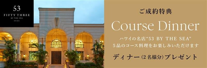 両プランともに、ハワイの人気レストラン「53 By The Sea」でのディナーを特典としてご用意。
