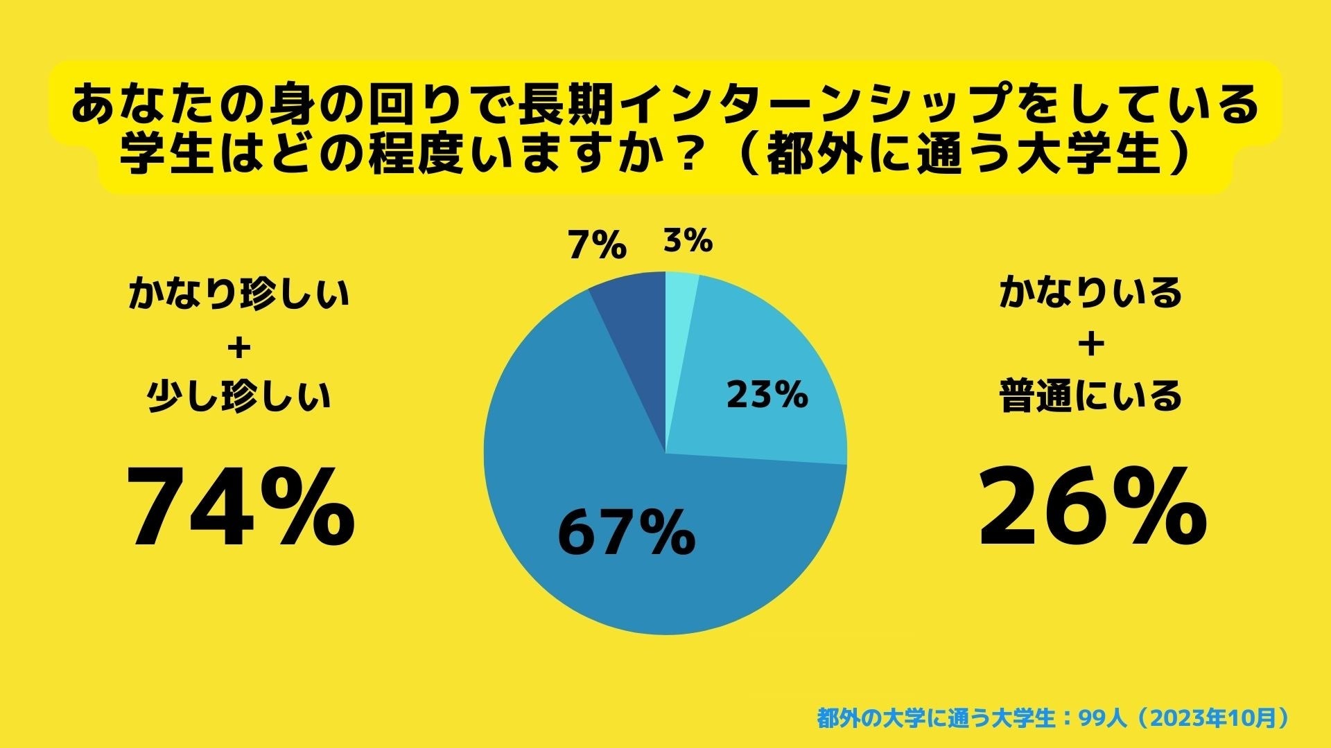 東京都の以外の大学に通う大学生の74%が長期インターンに参加するのは「珍しい」と回答。